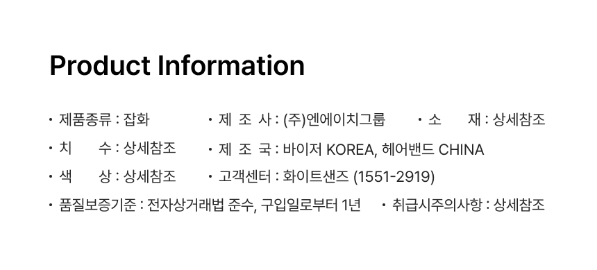 | 제조국(원산지) | 한국 |