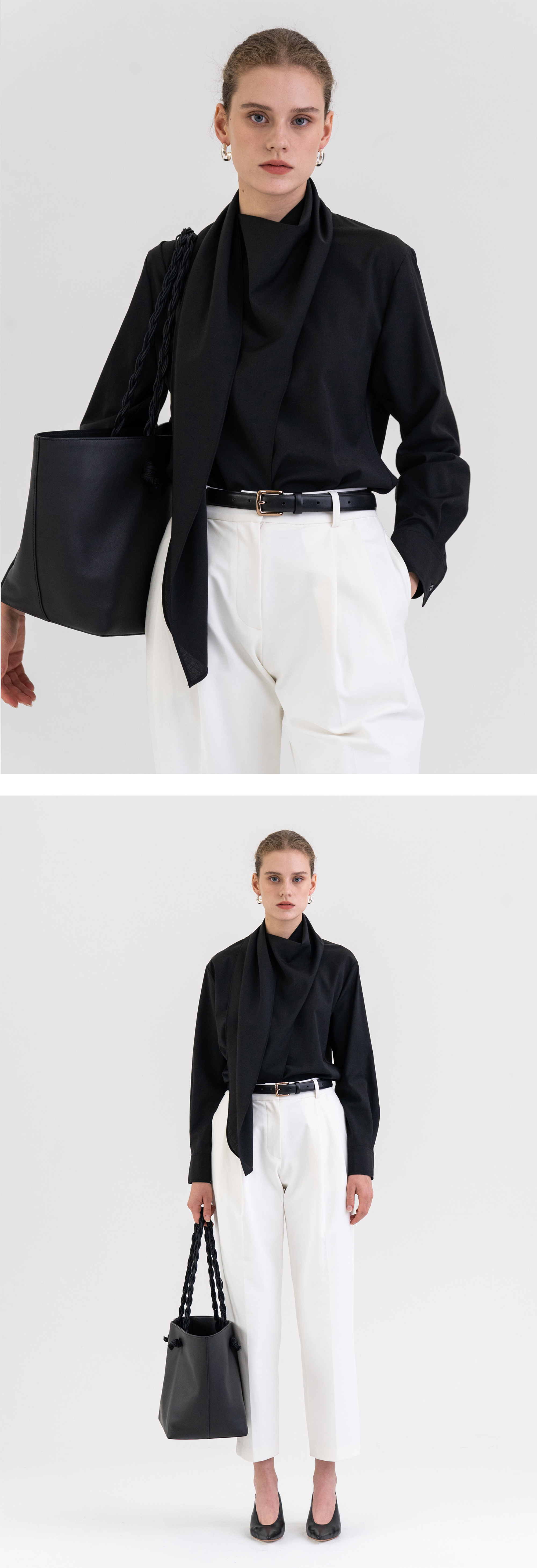 Draped Scarf Blouse Black
