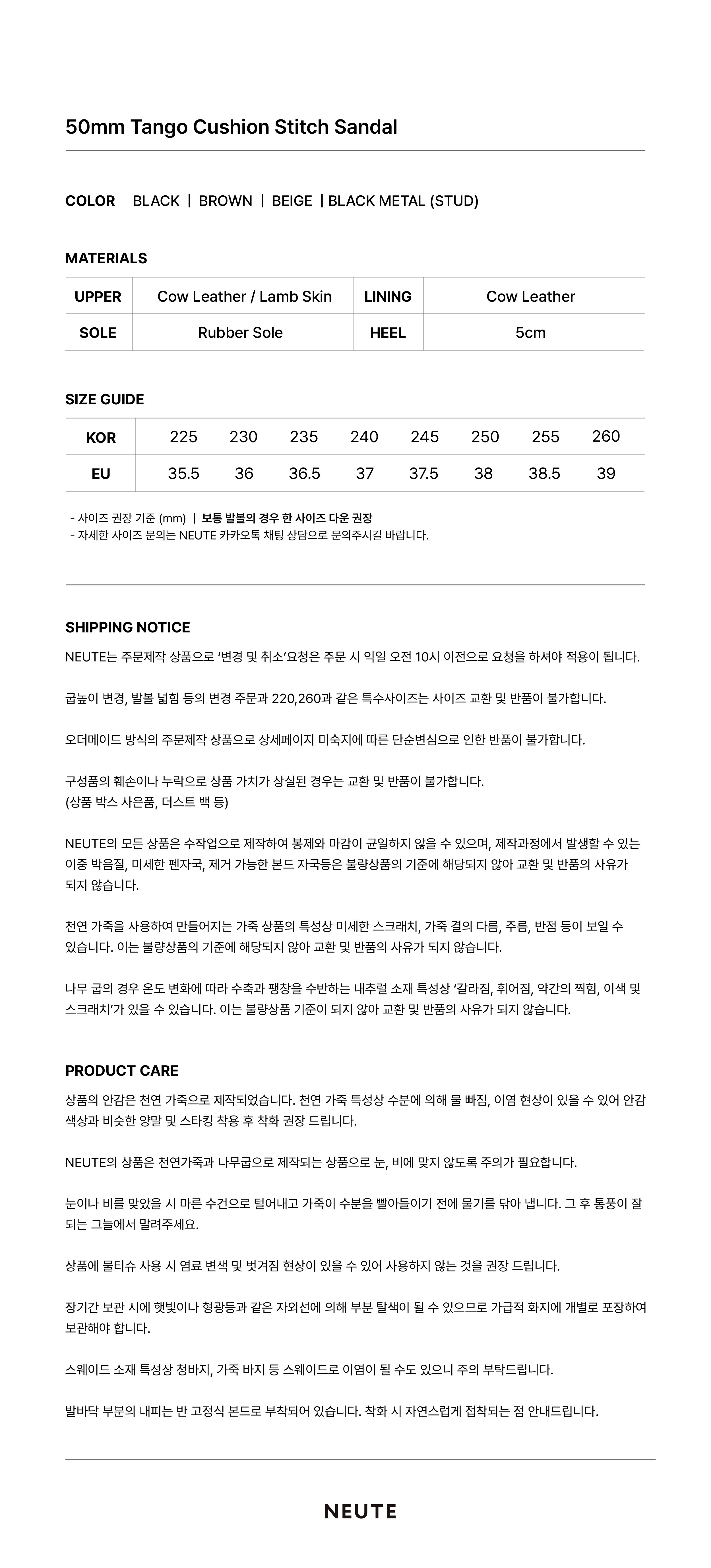 | 색상 | BLACK, BROWN, BEIGE, METAL BLACK |