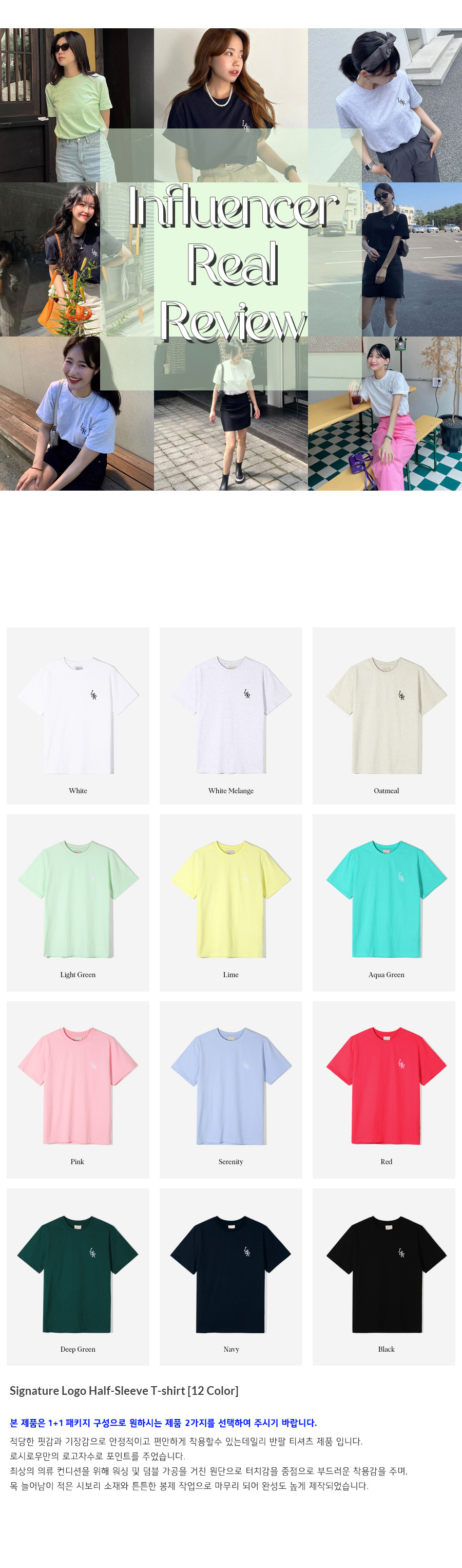 [단독][1+1] Signature Logo Half-Sleeve T-shirt [12color]