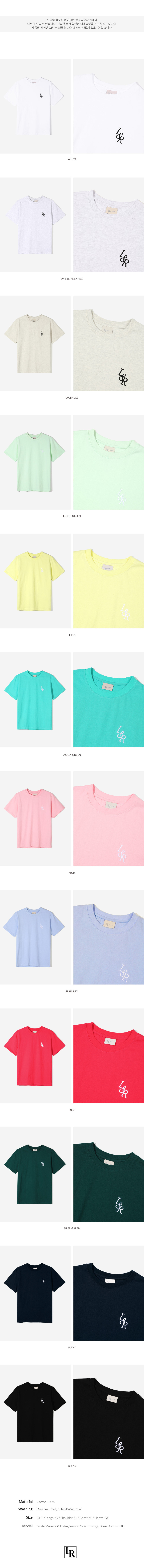 | 치수 | Aqua Green Free, Deep Green Free, Lime Free, Oatmeal Free, Pink Free, Red Free, Serenity Free, Light green Free, White Free, White melange Free, Navy Free, Black Free |