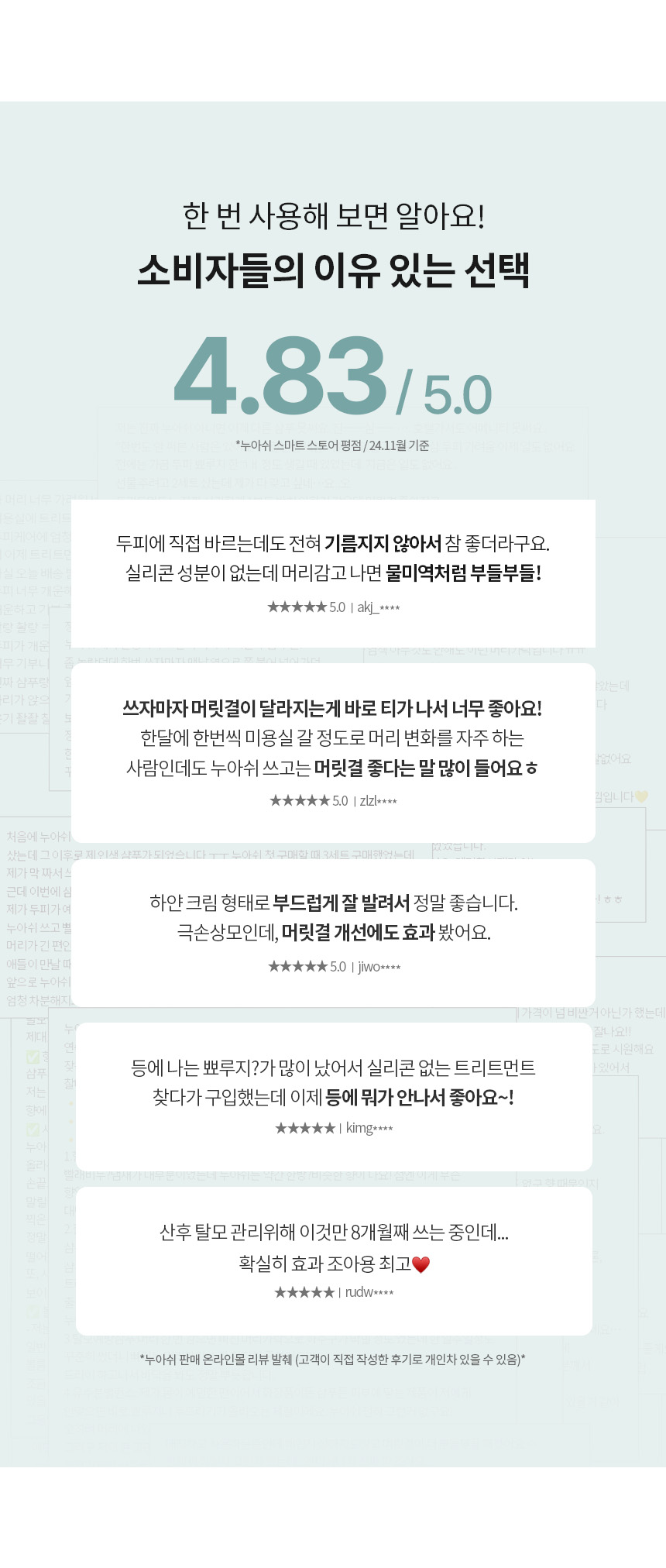 상품을 구매하신 고객님들의 생생한 사진과 경험이 담긴 상품평을