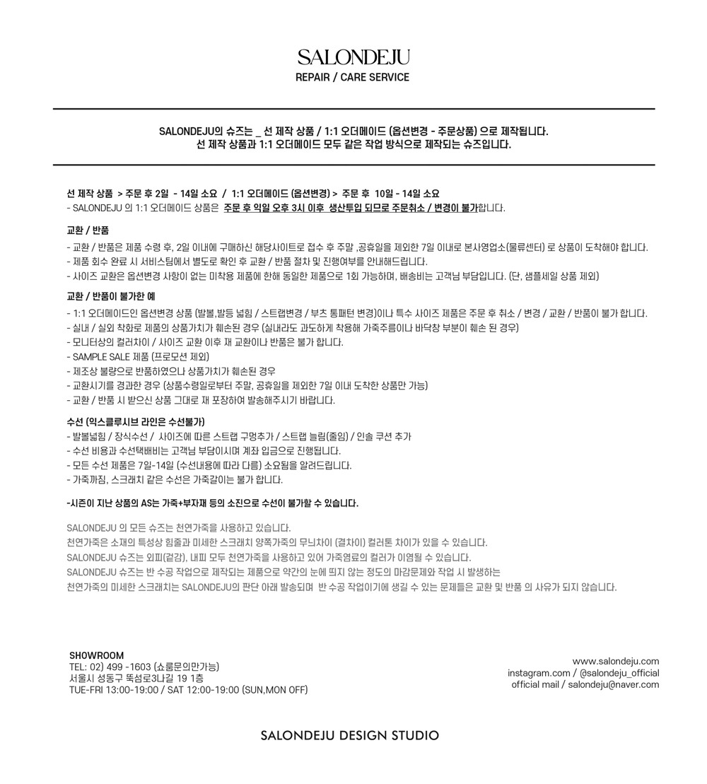 | A/S 책임자와 전화번호 | 쌀롱드쥬디자인스튜디오 / 02-499-8212 |
