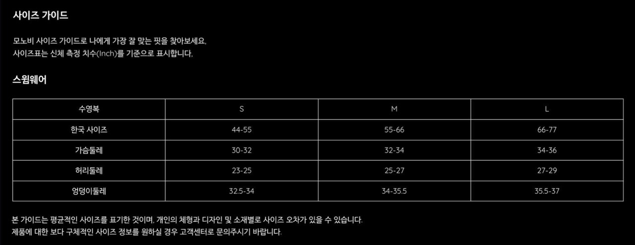 | 가슴둘레 (inch) |