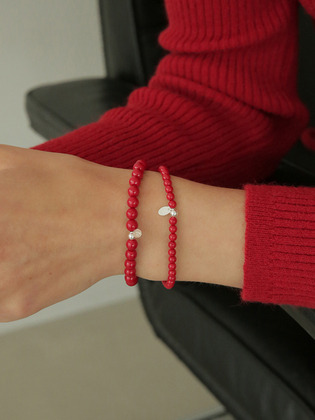Silver 925 산호 레드 진주 팔찌