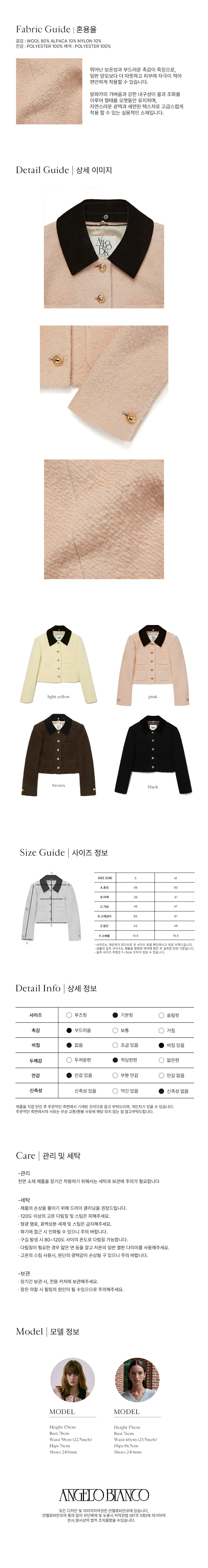 | 소재 | 겉감 : WOOL 80% ALPACA 10% NYLON 10%배색 : POLYESTER 100%안감 : POLYESTER 100% |