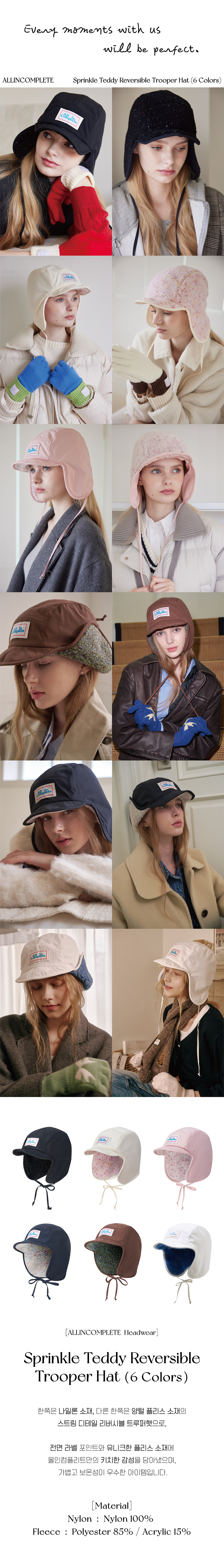 | 소재 | NYLON 100% / POLYESTER 85% ACRYLIC 15% |