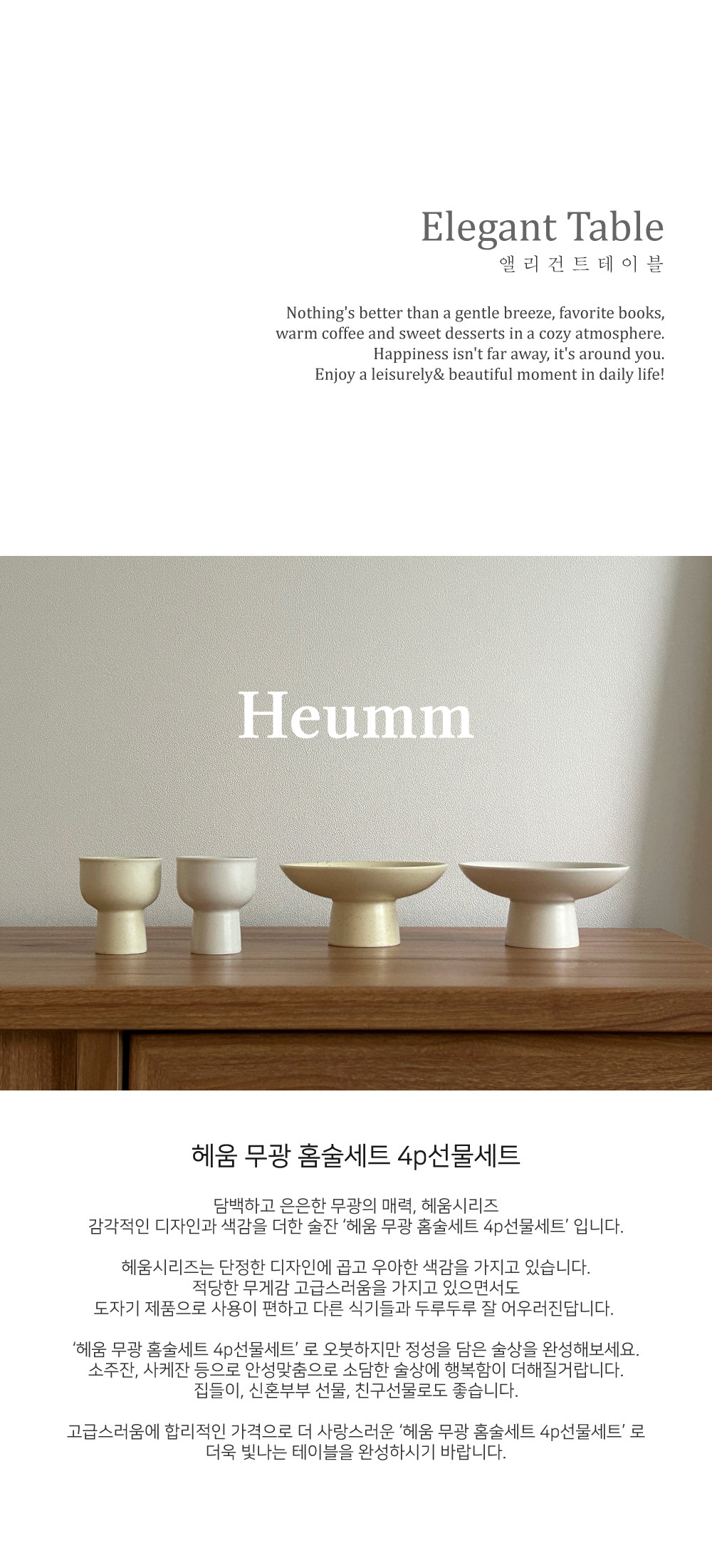[선물세트] 헤움 무광 홈술세트 4p 선물세트 소주잔 플레이트
