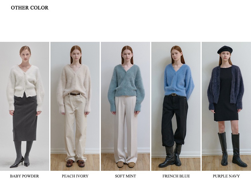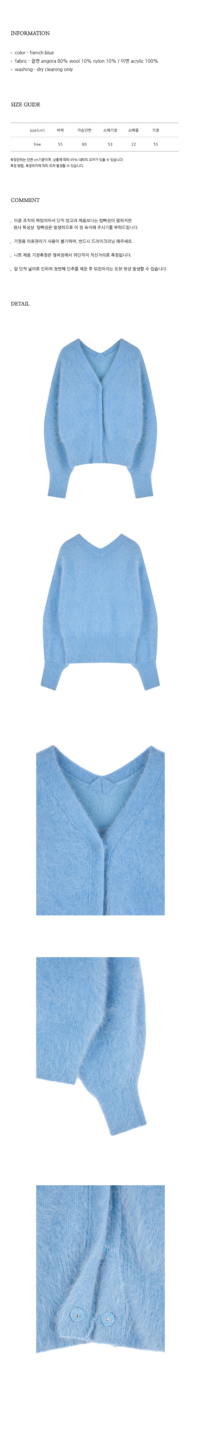 | 소재 | 겉면 angora 80% wool 10% nylon 10% / 이면 acrylic 100% |