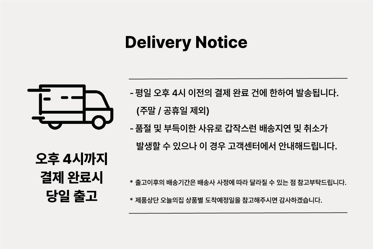 상품상세설명에 배송/교환/반품/취소 관련 안내가 기재된 경우 다음 안내사항보다 우선 적용됩니다.
