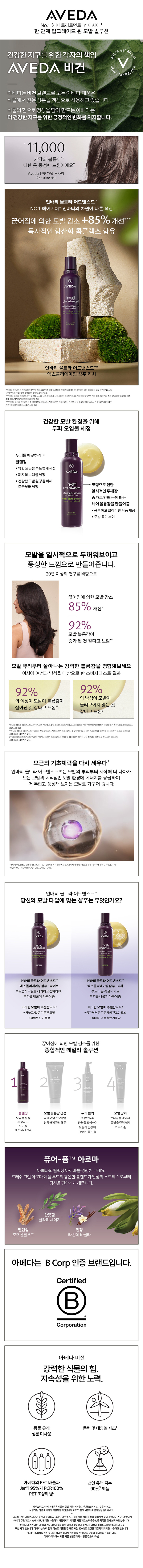 | A/S 책임자 및 전화번호(소비자 상담) | 아베다 고객상담실: 02-6971-3223 |