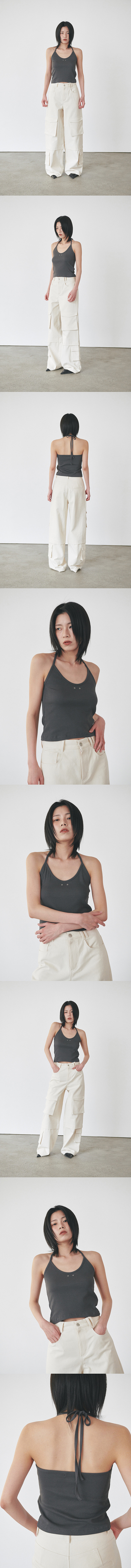 [ESSENTIAL] EYELET HALTER SLEEVELESS - CHARCOAL
