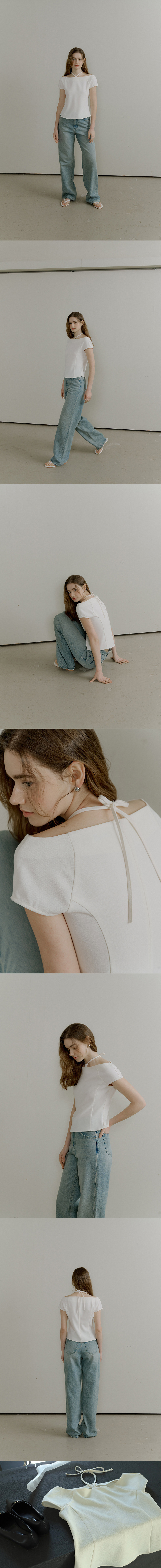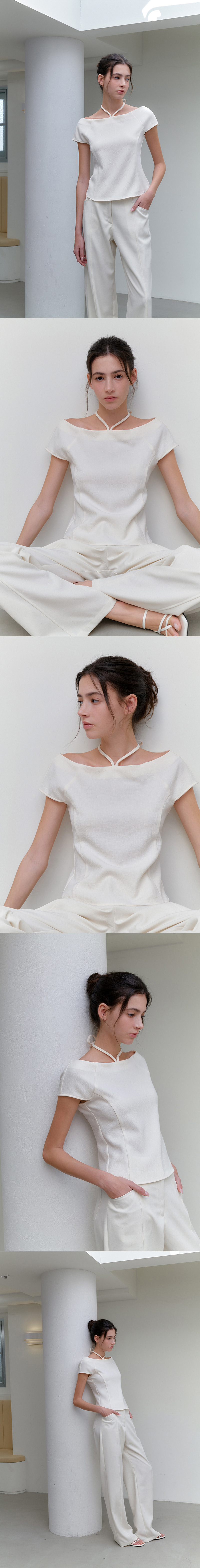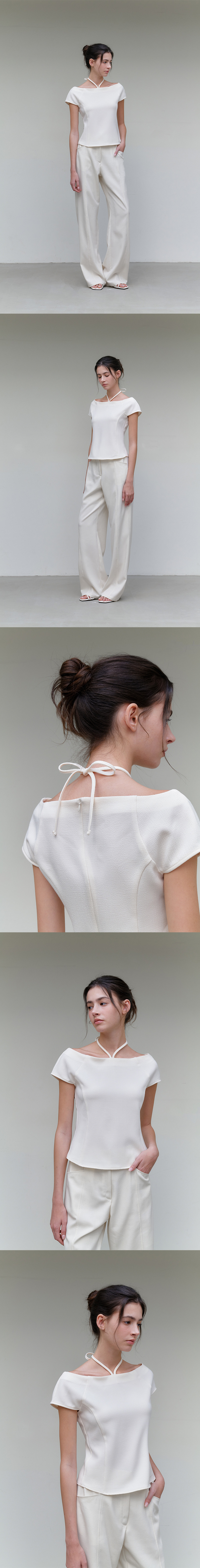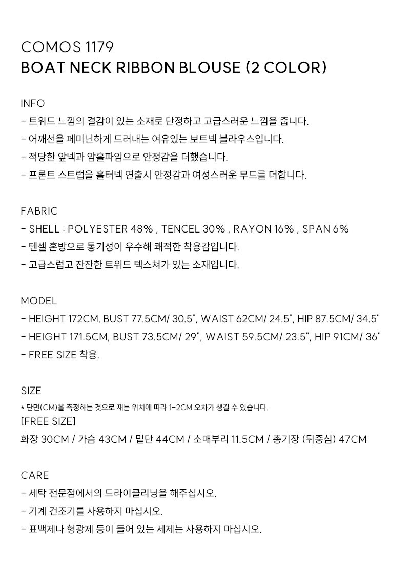 comos 1179 boat neck ribbon blouse (2color)