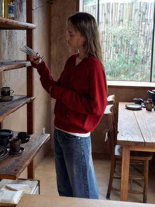 Cashmere 30% V-neck Knit Top[LMBEAU24KN257]-Scarlet Red