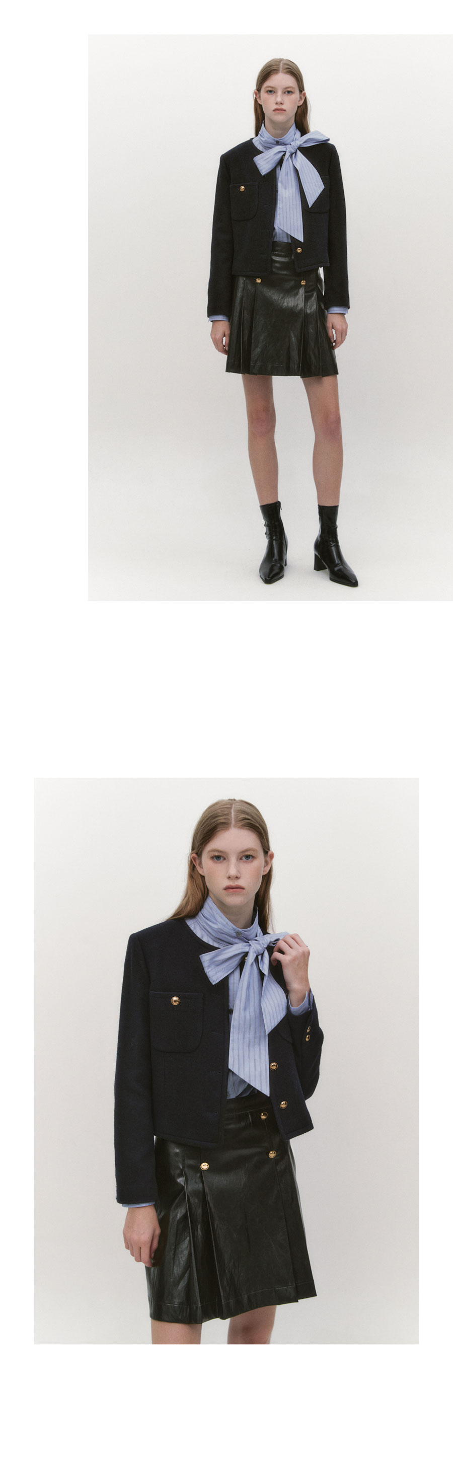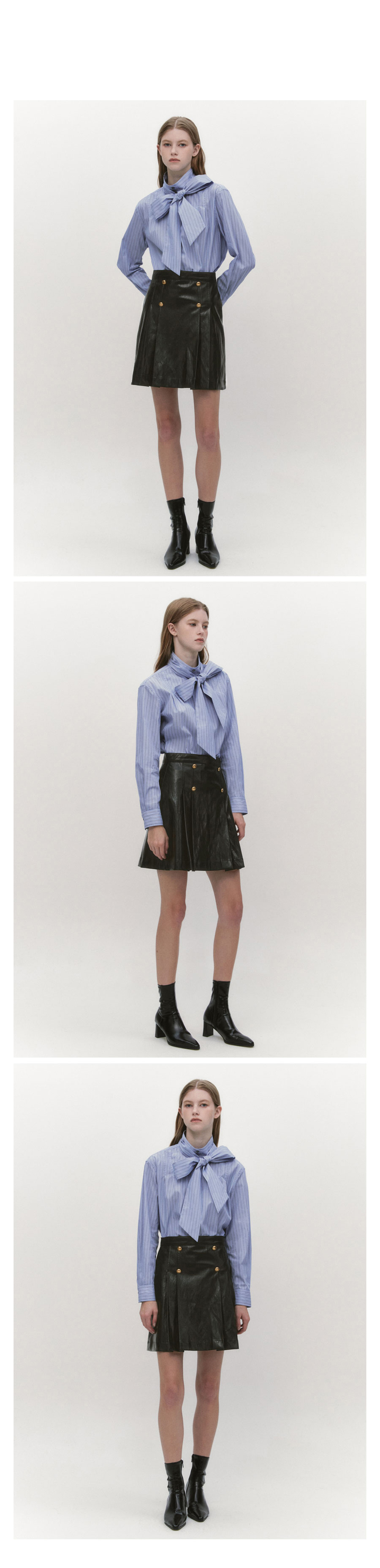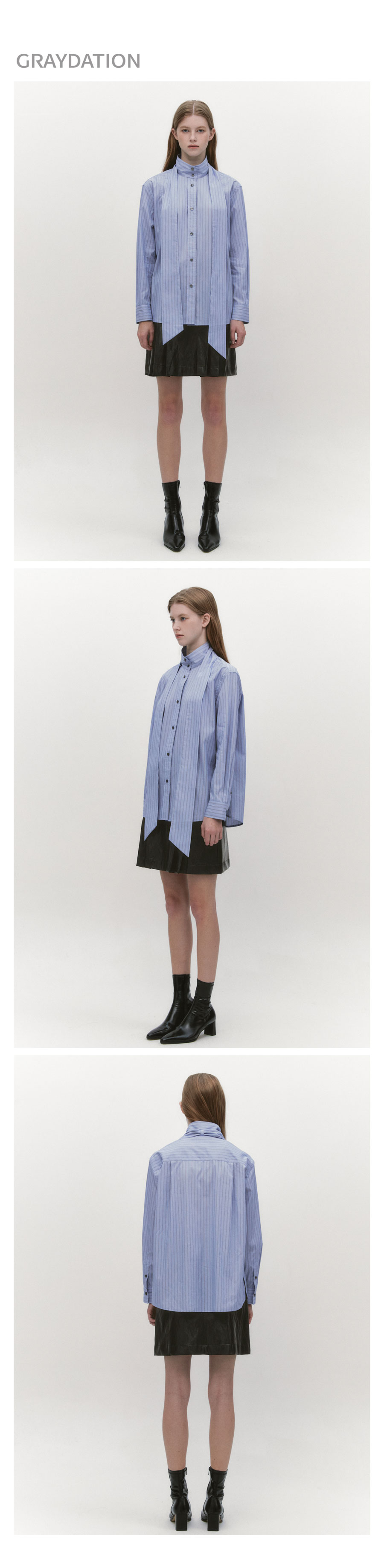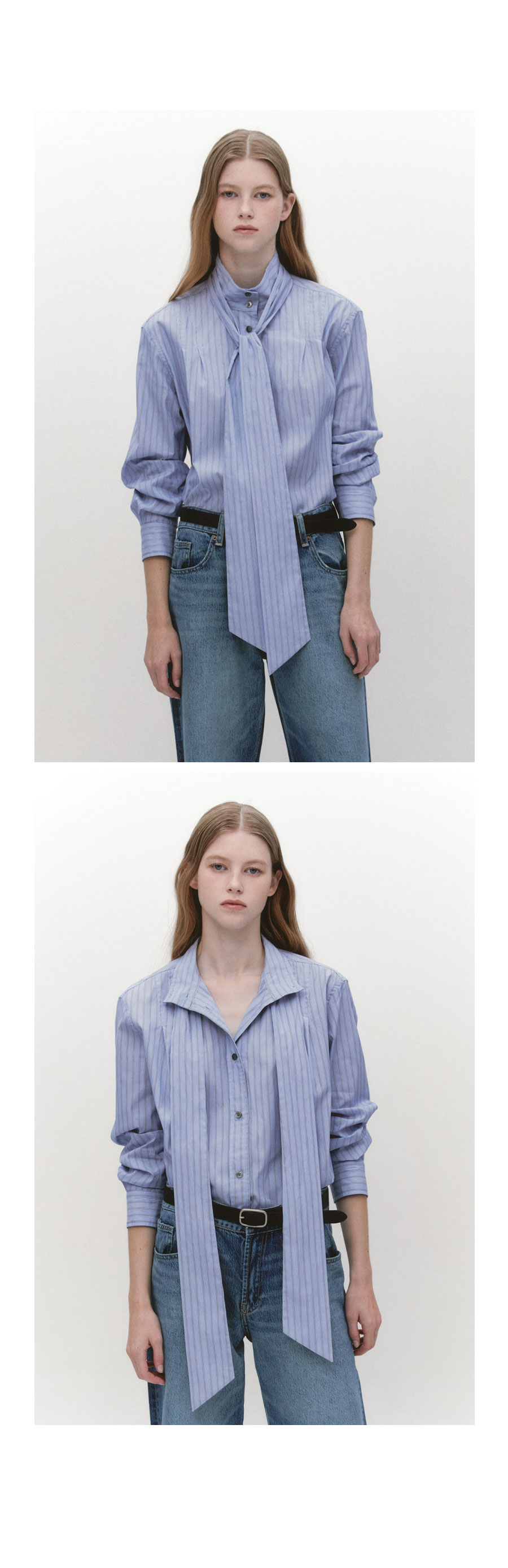 High Neck Tie Shirts BLUE