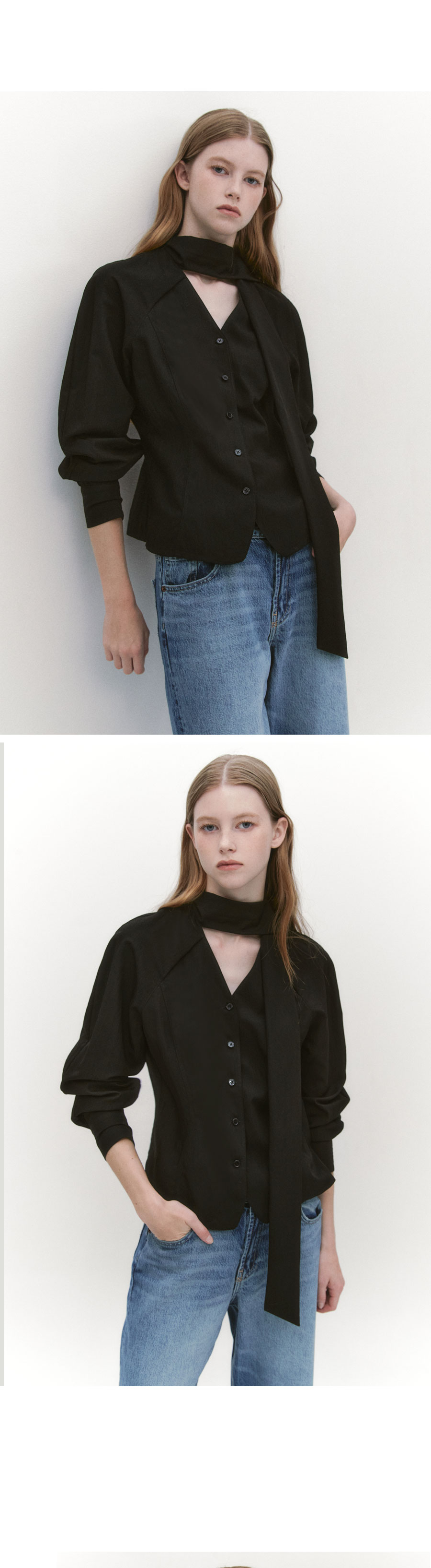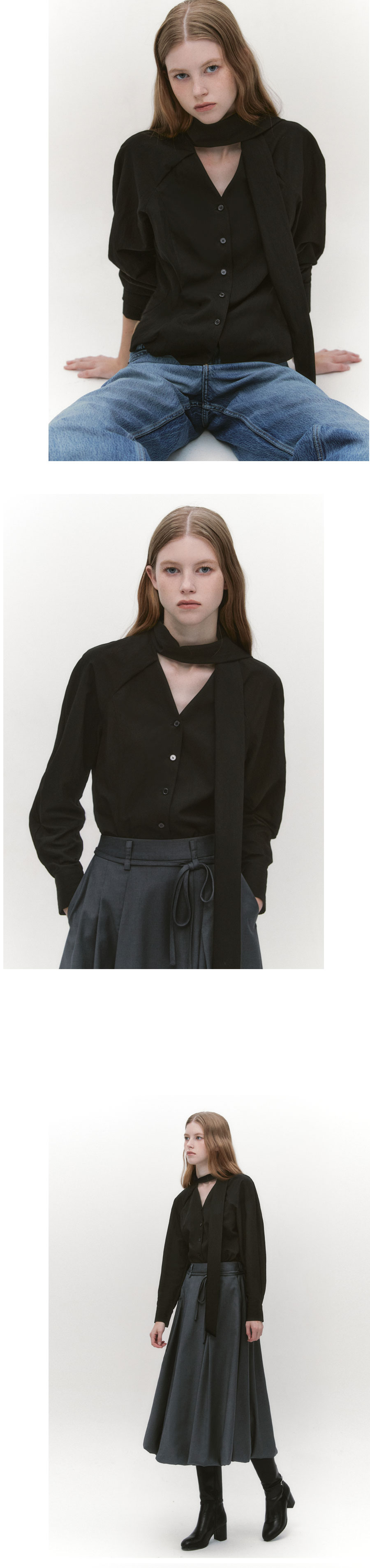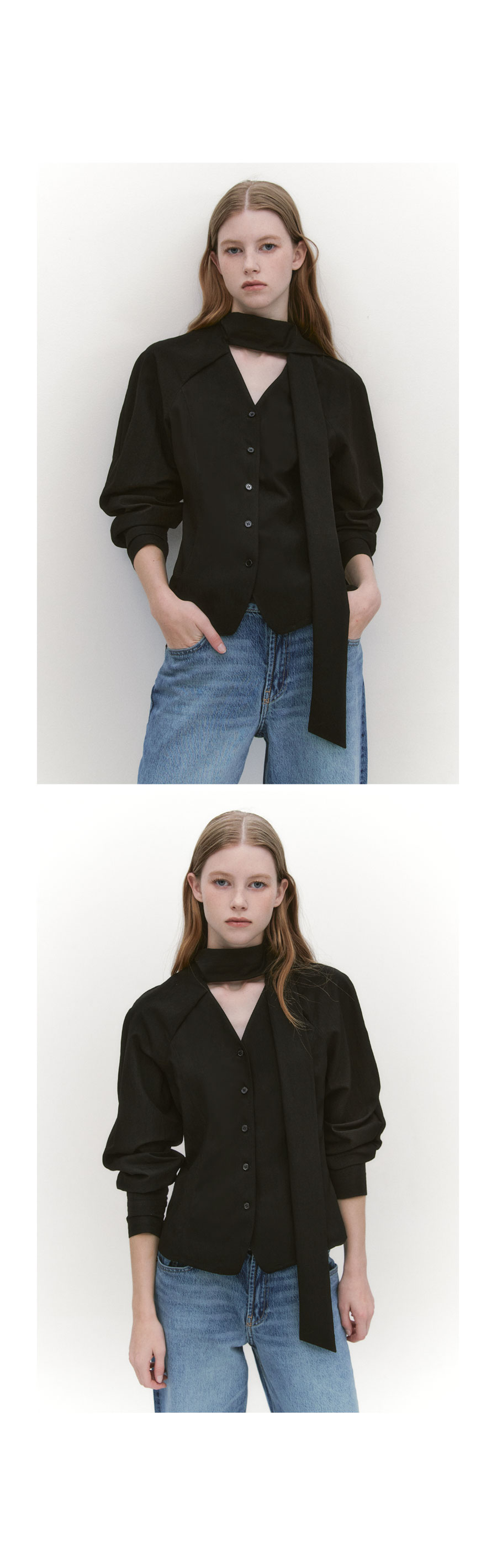 Raglan Sleeve Tie Neck Blouse BLACK