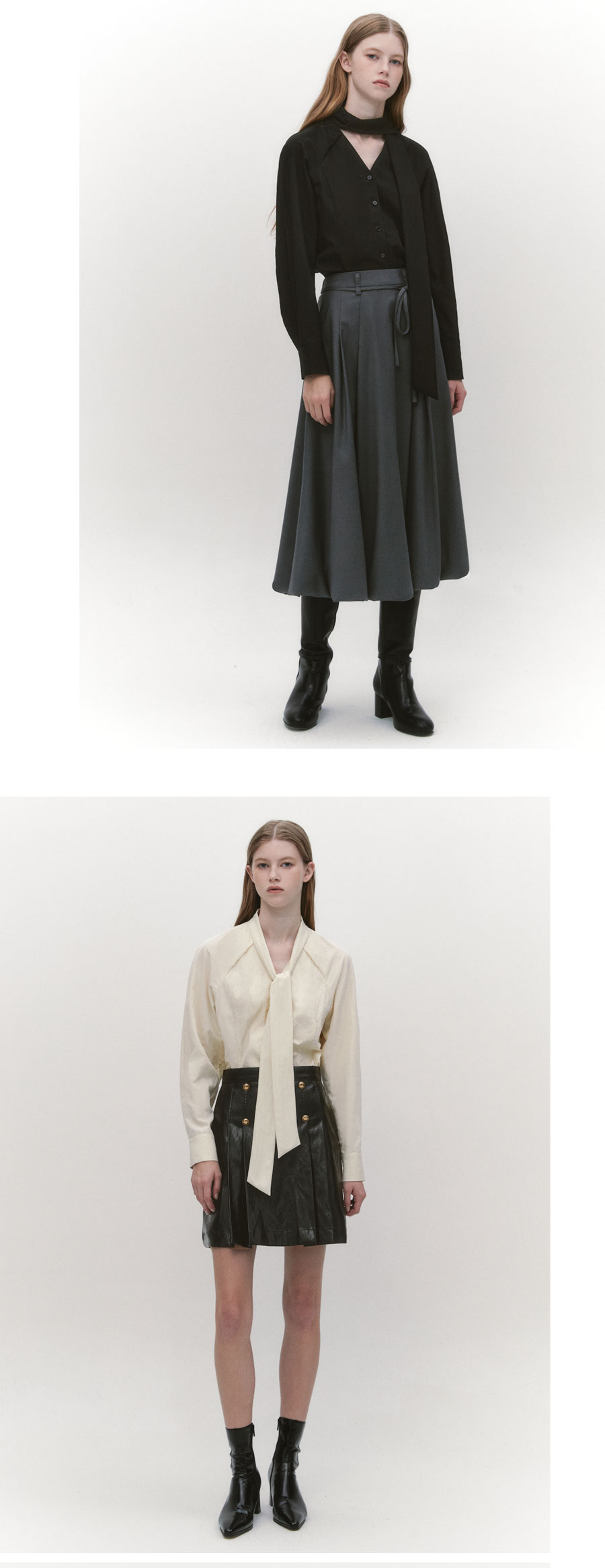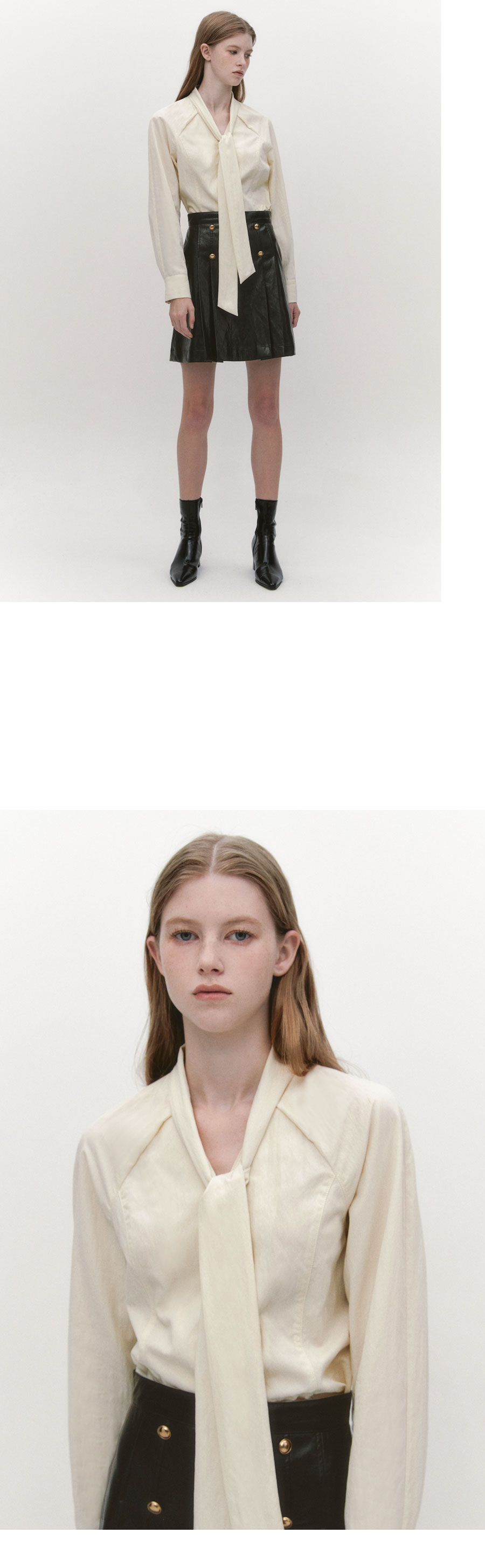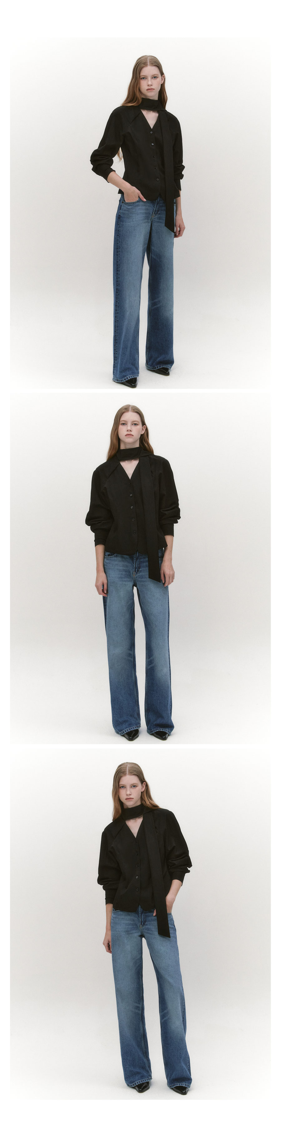 Raglan Sleeve Tie Neck Blouse BLACK