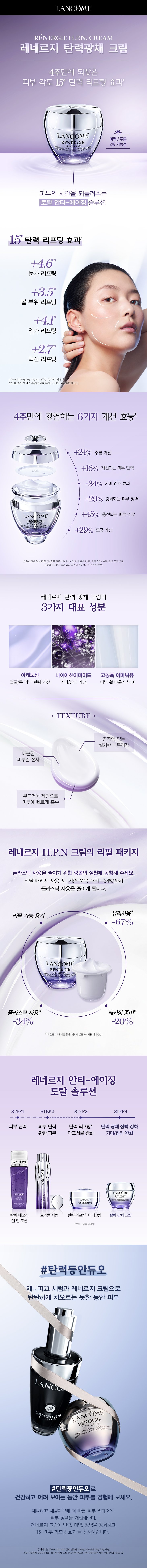 피부의 시간을 되돌려주는 토탈 안티-에이징 솔루션. 레네르지 크림 한병으로 브라이트닝과 탄력 케어를 동시에.