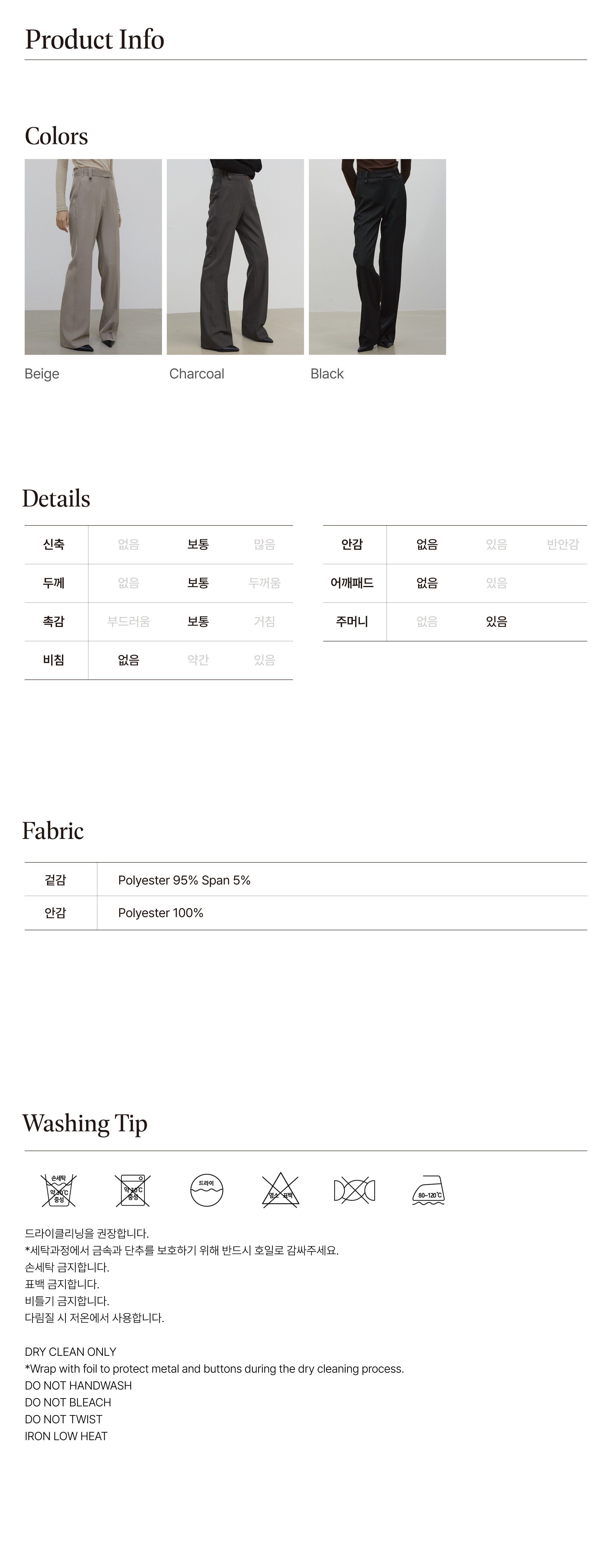 | 소재 | POLYESTER 95%, SPAN 5% |