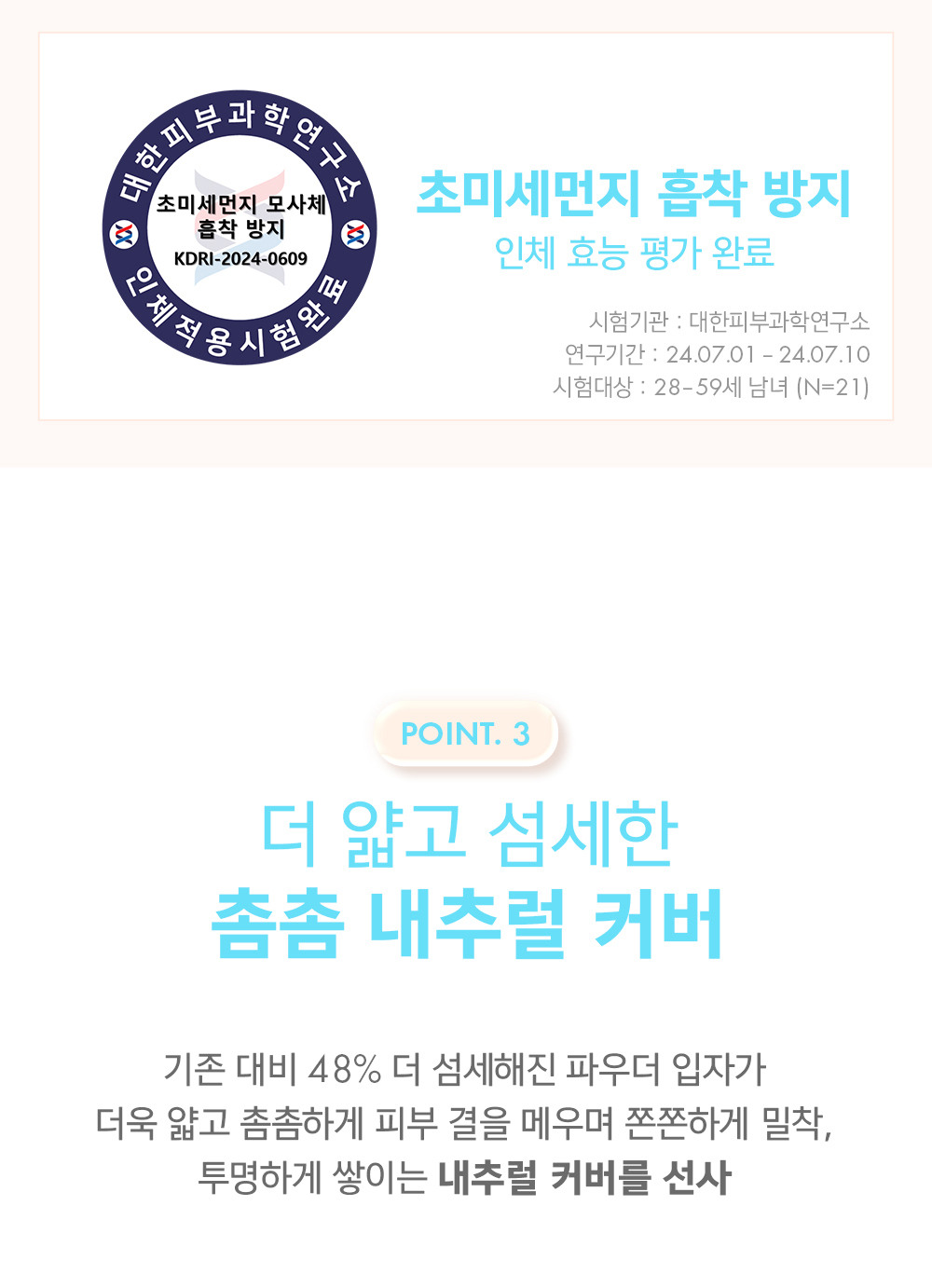| 화장품법에 따른 기능성 화장품 심사(또는 보고)를 필함 | 심사완료 |