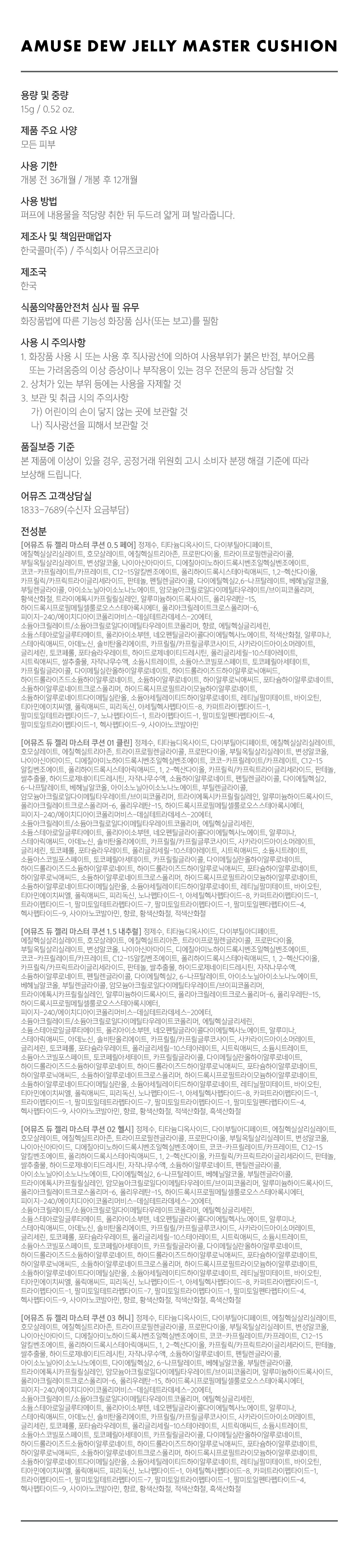 | 화장품법에 따라 기재ㆍ표시하여야 하는 모든 성분 | 상세페이지참조 |