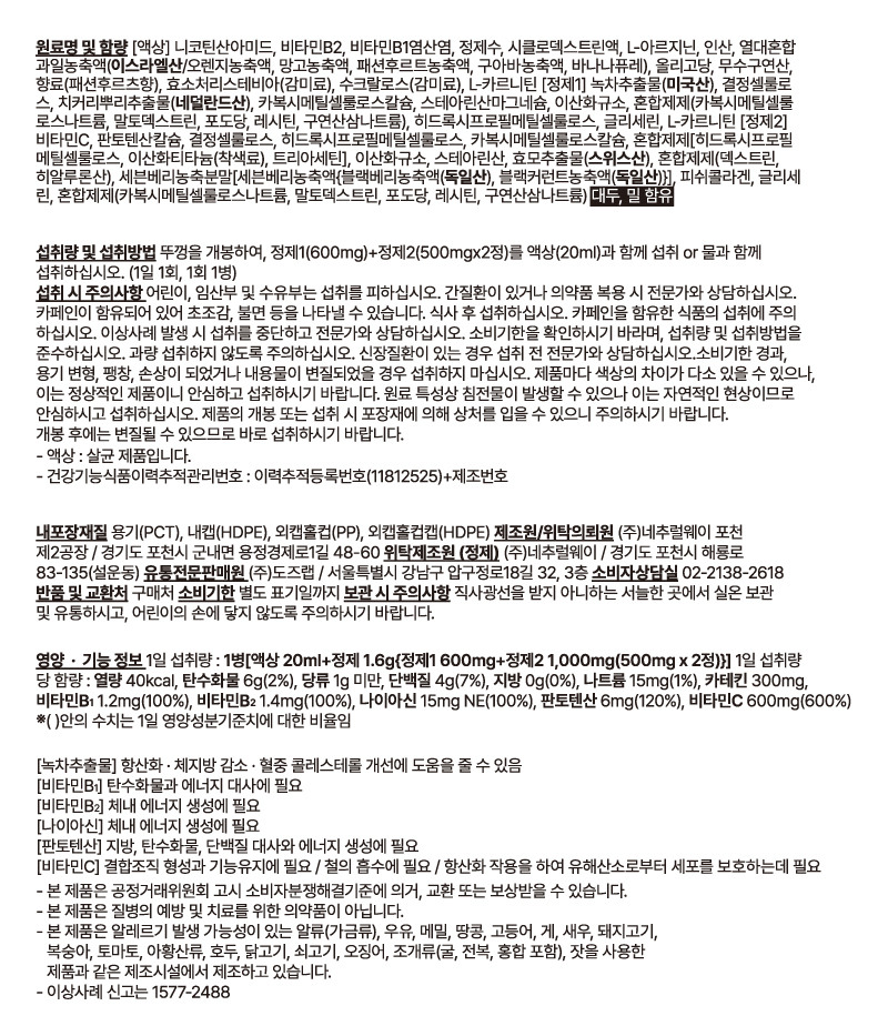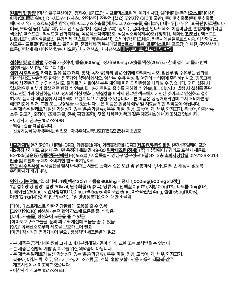 | 섭취량. 섭취방법 및 섭취 시 주의사항 | 상세페이지참조 |