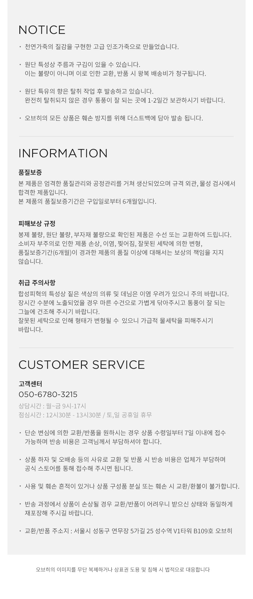 | 교환반품 및 품질보증 기준 | 관련법 및 소비자분쟁해결 규정에 따름 |