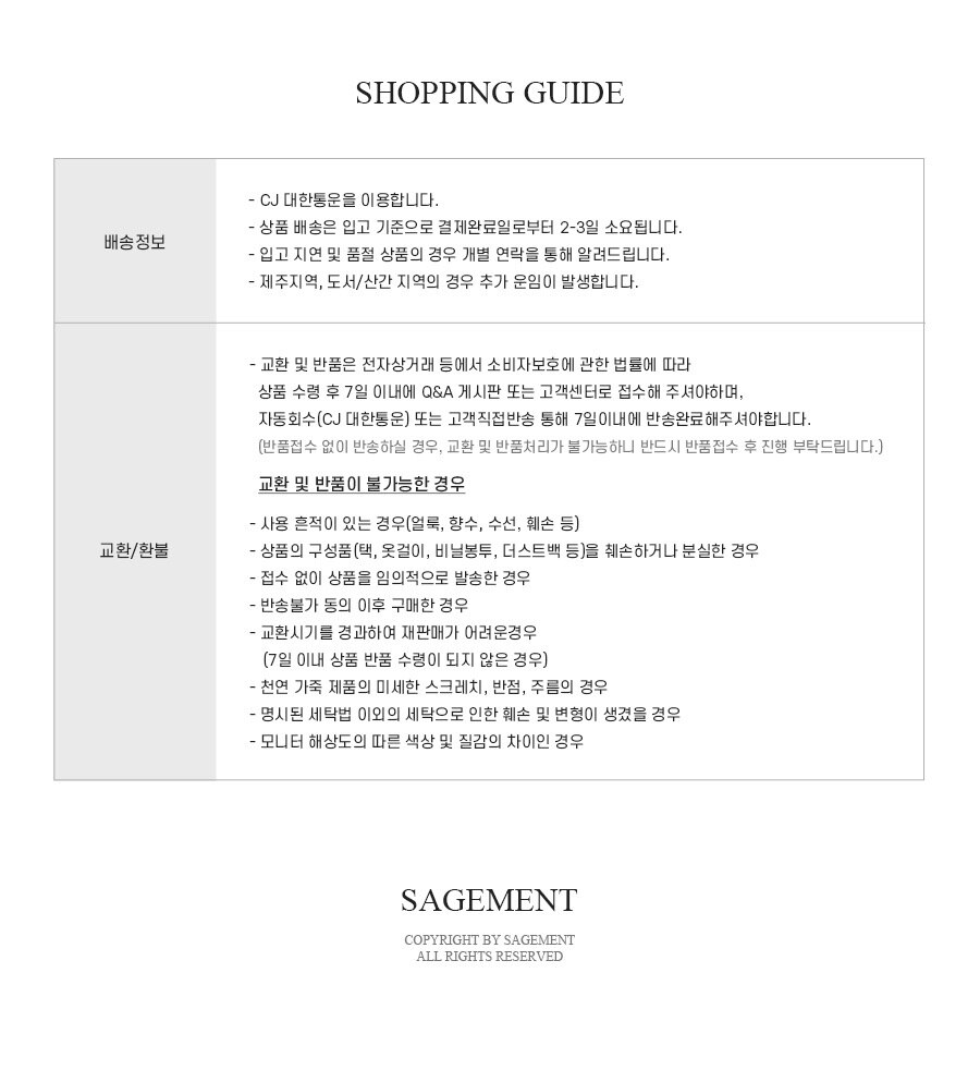 상품상세설명에 배송/교환/반품/취소 관련 안내가 기재된 경우 다음 안내사항보다 우선 적용됩니다.