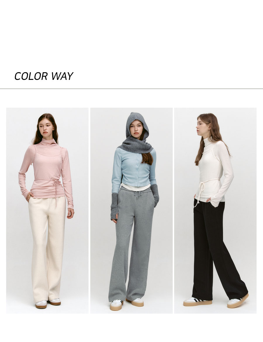 Knit-Bonded Semi-Wide Banding Pants MELANGE GRAY