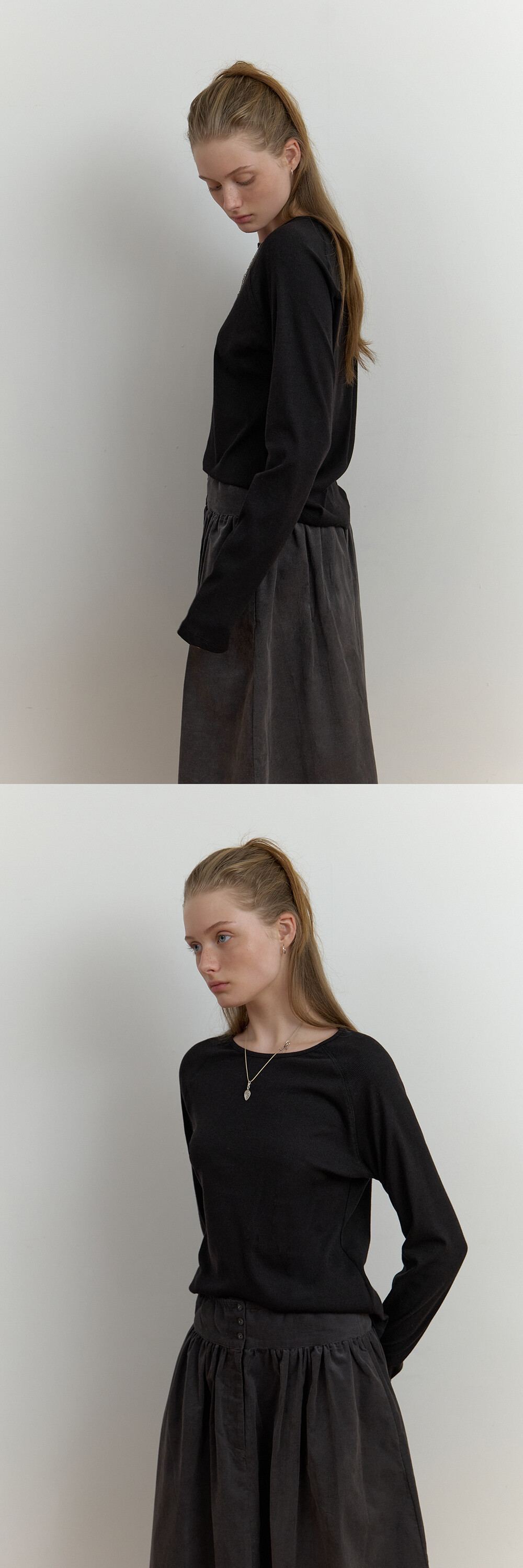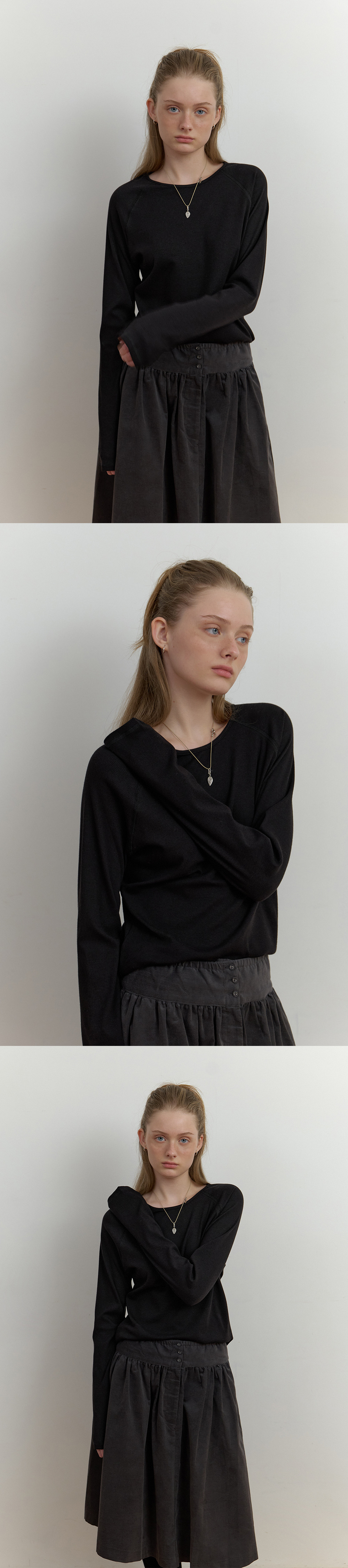 - 래글런 소매로 단조로운 디자인에 은은하게 포인트가 되어줍니다.