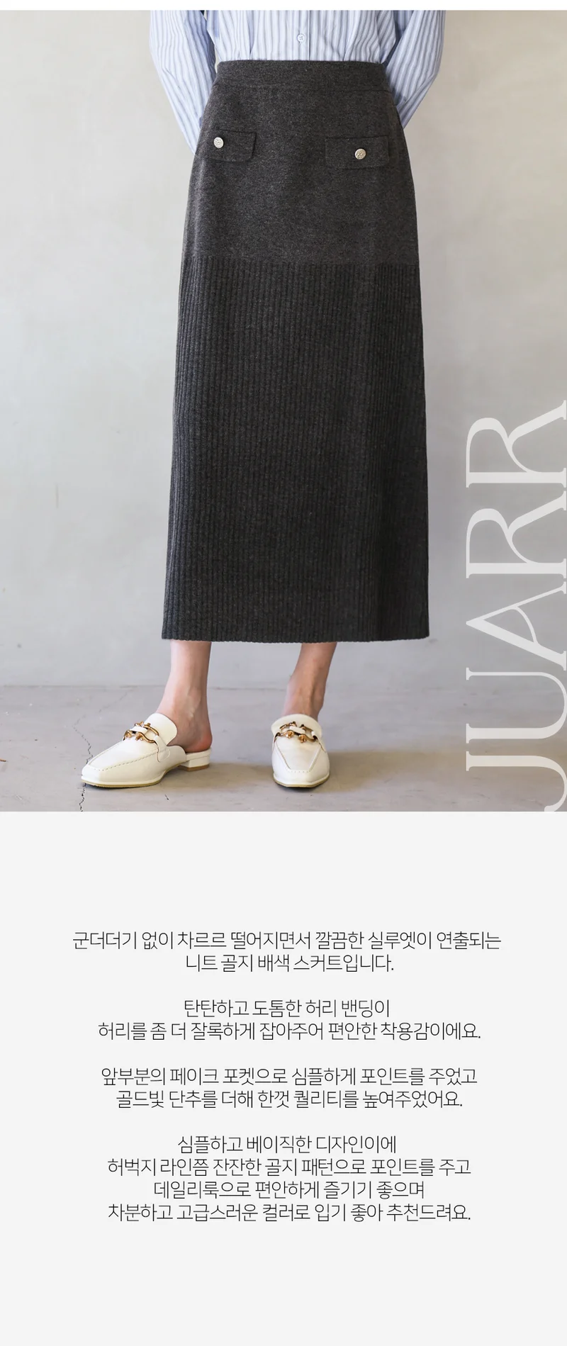 금장단추 포켓 디테일 니트 골지배색 스커트_3color_JFFSK230M
