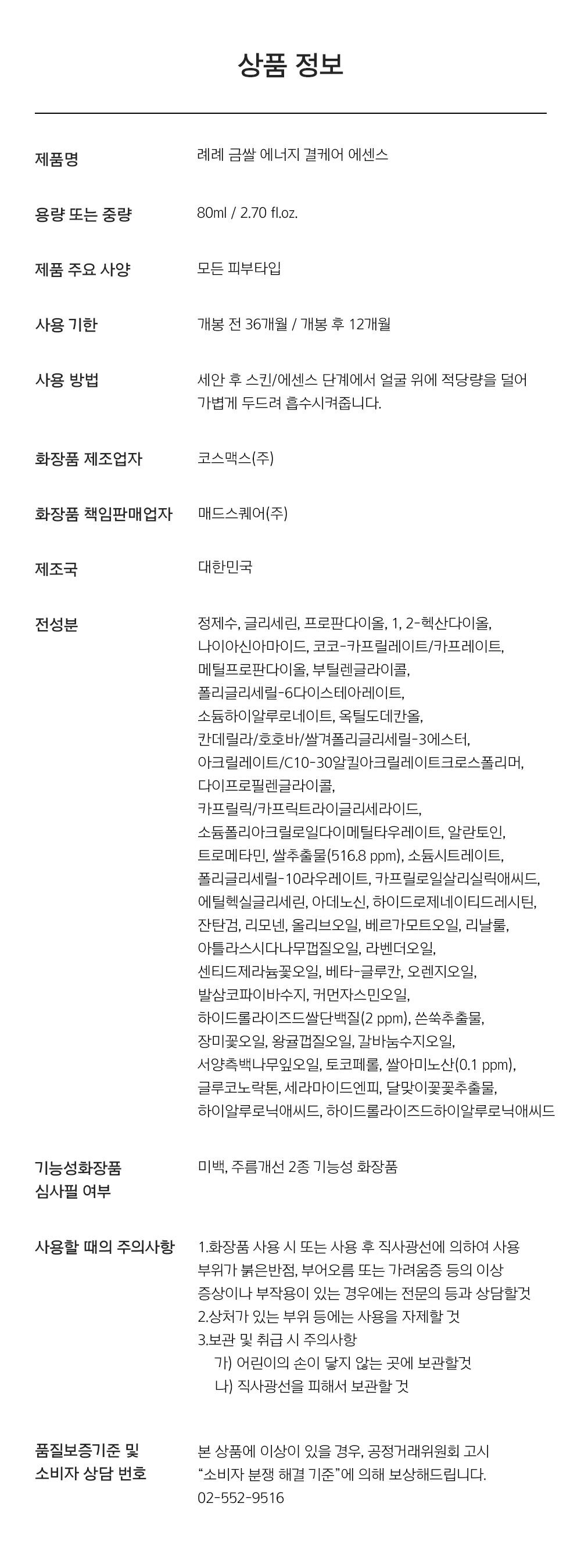 금쌀 에너지 결케어 에센스 80ml