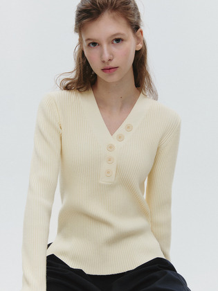 브이넥 버튼 골지 니트(MAFAKN21MIV)