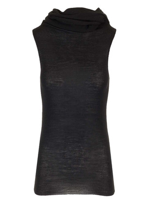 | Sleeveless turtleneck in wool jersey from Rick Owens with high neck and tight fit. |