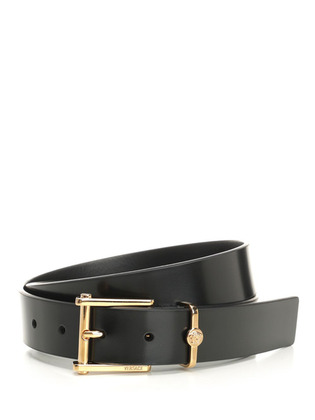 | Leather belt with metal buckle and Medusa logo |