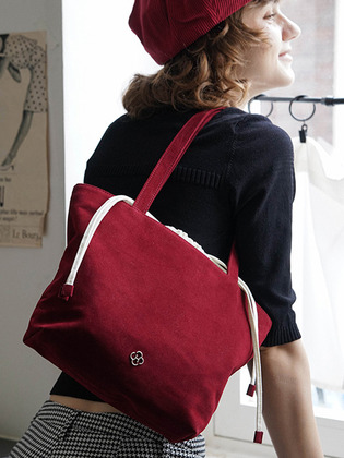 버드 스웨이드 드로우 스트링 백_와인