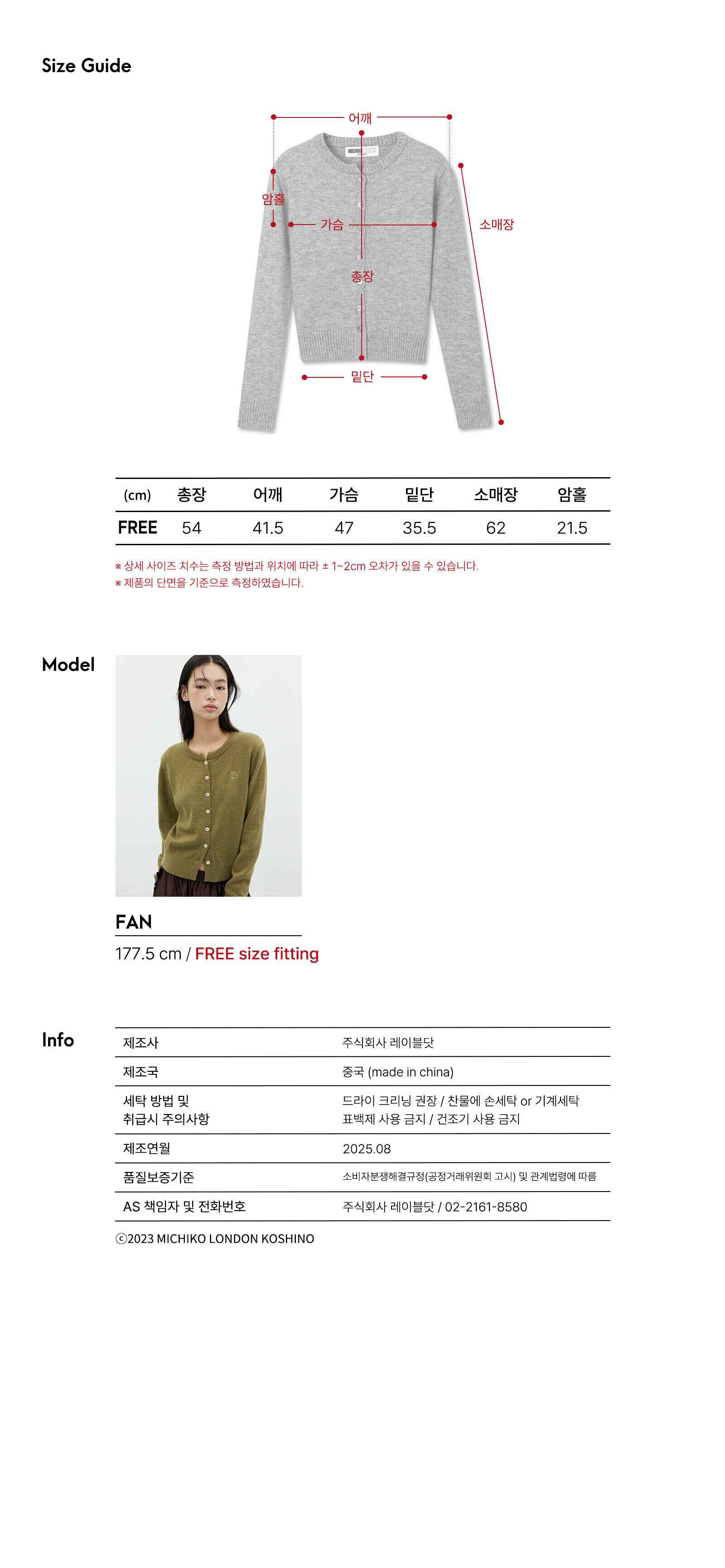 | A/S 책임자와 전화번호 | 주식회사 레이블닷 / 02-2161-8580 |