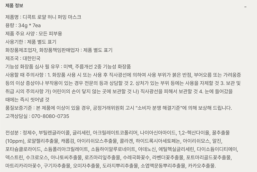 [디콕트] 로얄 허니 퍼밍 마스크(꿀콜라겐팩)_7매입