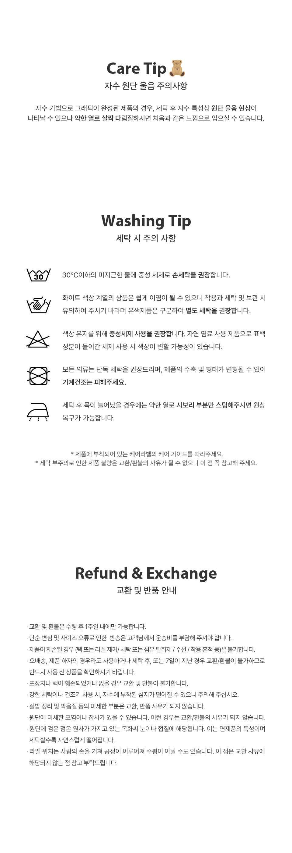 상품상세설명에 배송/교환/반품/취소 관련 안내가 기재된 경우 다음 안내사항보다 우선 적용됩니다.